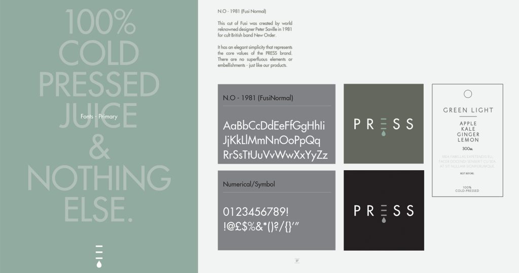 Our work began with verbal identity, creating the name – simply PRESS. Our brand identity communicates both the physical process of the cold-press technique and the premium quality of the product. The neutral colour palette allows the vibrant colours of the juices themselves to be highly visible and not overpowered by the brand. Our work covered; Research – focus groups – insight, Verbal and visual identity – guidelines, Core Proposition, Packaging design, Retail concepts.
